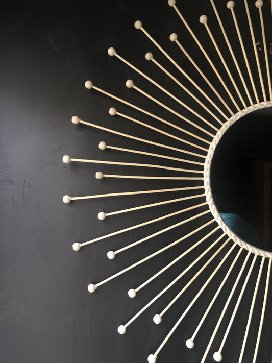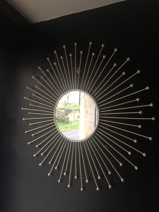 Miroir soleil écru tout en bois avec perles écrues 60cm