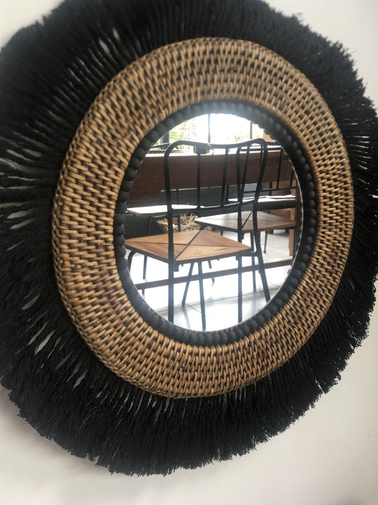 Miroir en rotin et coton macramé tendance BOHEME CHIC